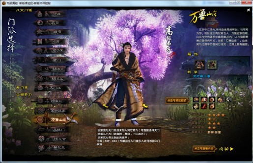 1.进入游戏后登陆界面,向车夫打听各门派与势力,可以很醒目的看见各门派介绍,这里我们选的是万兽山庄。
