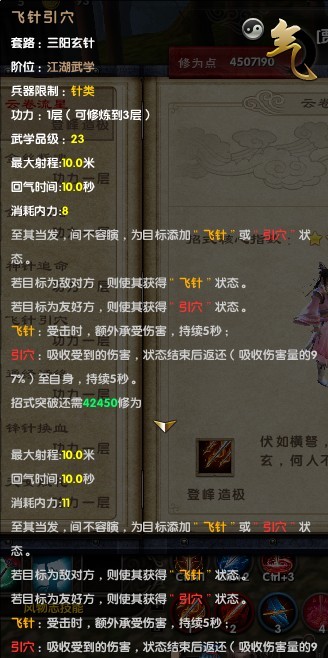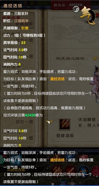 在这里只要介绍的是沈家的内功、招式和一些主要的玩法,1、首先通过内功和招式的介绍我们可以知道沈家是偏向辅助的方面也就是有点像传统网游的奶妈。
