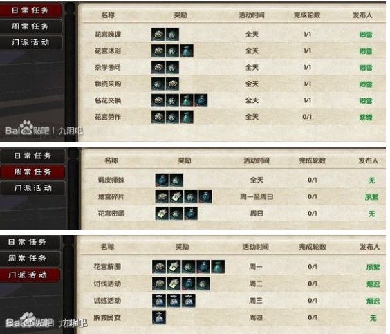 所以妹子们为了换新衣服和提高内功等级要好好的做每日任务....