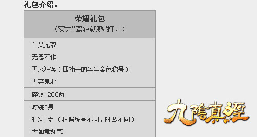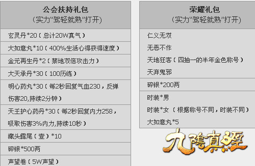 公会入驻三重礼:凡同时获得一、二重礼的公会,在开服7天内,公会专区贡献前50名的公会还可分别获得20份江湖明俊(30天)+20张九阴荣耀礼包