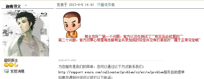 之前有玩家在官方论坛提出,关于寒心恨雪的一些问题,以下是玩家提问
