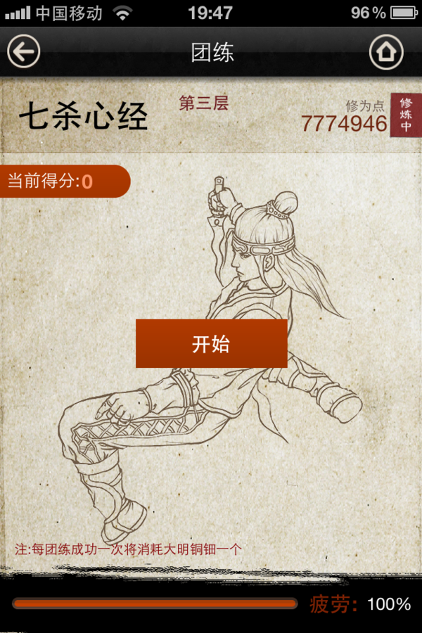 2. 团练:通过消耗“大明铜钿”道具开启简单小游戏,完成达到团练的目的