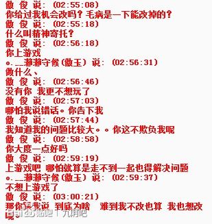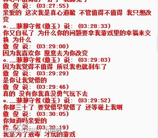 提出了分手,他找到了陶轩,让陶轩找我谈,说让我给他次机会,如果傲俊有不对的地方,那么陶轩去骂他,看在陶轩的面子上,勉强同意了。于是我们5月14日与傲俊在游戏里结婚了,但是好景不长,通过几天的接触,还是觉得我们性格不合玩不到一起去,他的占有欲太强,戒备心太强,不许我跟别人玩跟别人发短信。(此处上图)