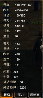霓裳虽然双加成但是加成低,可以堆满臂力内息放弃罡气身法保持臂力内息为最高属性,食物闪避药物命中