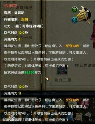 作用:可以无视CD放一次60秒内放过的一个招式,这也就是为什么你每放一个招式身上会有那个招式的60秒buff了。这套武学招式CD都那么长主要原因就是在这,10点怒气太好攒了,用个比喻,如果你在对方3分之一血以下的时候放了翩缟衣,然后用怒招再放一次都没打在对方格挡上的话很有可能秒杀了他。