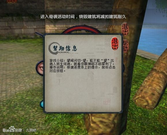 第二种就是“望”。与NPC对话后,点选系统显示的那个,到进度条结束,就算完成。