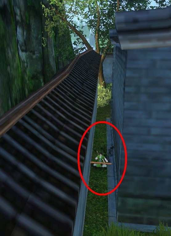 山房后面的半山腰上。。。。树比较茂盛,有遮挡物。(这是左边的点,在右边相似位置也有一处树丛,也是琴师热门位置)