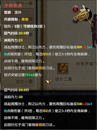 沙鸥掠波: 一招超大范围控制, 中招后可以格挡、出招,但是不能移动。