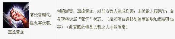 虚招,破防后,自身获得10层“邪气”。辟邪起手选择之一。是连招的重要前提。