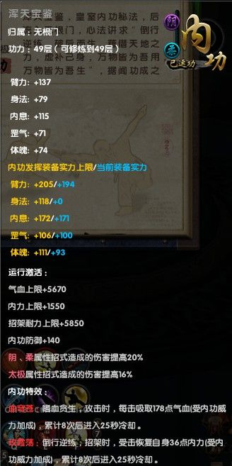 《九阴真经》无根门内功浑天宝鉴49层属性图