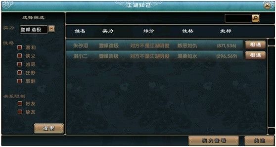 所以我找伴侣的时候,可以通过伴侣功能里的江湖知己进行搜索,首先,我不会选择实力接近这个服务器平均水平的人,因为他肯定一直在玩。其次,我会选择不是名俊的玩家,说明他至少一个月没有上线。