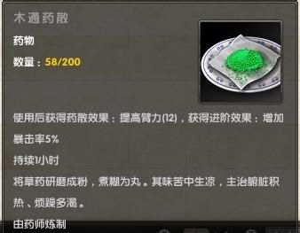 木通药主要作用在于利用5%的爆击加成,配方简单。是常作为药引子的存在。