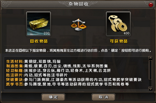 如果您是一位埋头进修武功的侠士,经常出入于各大势力馆场与禁地,相信虽不一定做到拳打南山猛虎、脚踢北海蛟龙,至少也积攒了不少劳动成果。生活材料、制造图集、批注碎片、突破要诀、轻功秘籍、武功书页,留之无用扔之可惜。