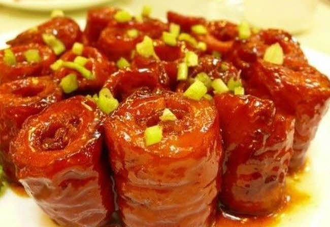 九转大肠 是山东地区汉族传统名菜之一,属于鲁菜系。此菜是清朝光绪初年,济南九华林酒楼店主首创,开始名为“红烧大肠”,后经过多次多次改进,红烧大肠味道进一步提高。许多著名人士在该店设宴时均备“红烧大肠”一菜。一些文人雅士食后,感到此菜确实与众不同,别有滋味,为取悦店家喜“九”之癖,并称赞厨师制作此菜像道家“九炼金丹”一样精工细作,便将其更名为“九转大肠”。