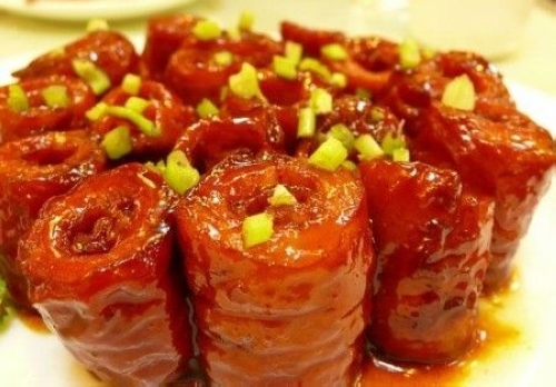 九转大肠是山东地区汉族传统名菜之一,属于鲁菜系。此菜是清朝光绪初年,济南九华林酒楼店主首创,开始名为“红烧大肠”,后经过多次多次改进,红烧大肠味道进一步提高。许多著名人士在该店设宴时均备“红烧大肠”一菜。一些文人雅士食后,感到此菜确实与众不同,别有滋味,为取悦店家喜“九”之癖,并称赞厨师制作此菜像道家“九炼金丹”一样精工细作,便将其更名为“九转大肠”。