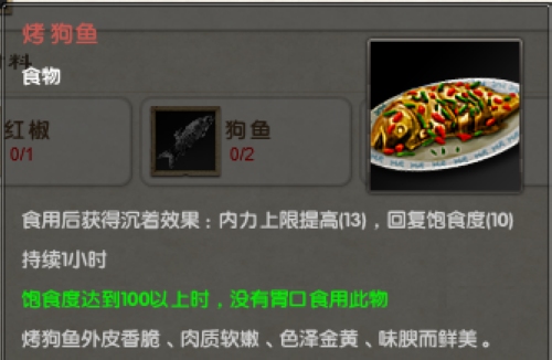 在游戏中狗鱼似乎随处可见,还能小幅度提高内力上限,风餐露宿时来一发烤狗鱼吧!
