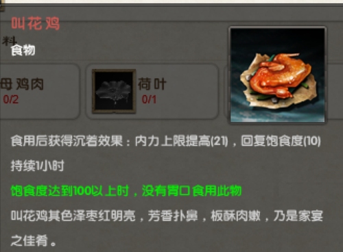游戏中同样可以提高内力的叫花鸡可不仅仅是丐帮的最爱哦!