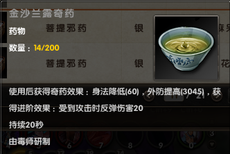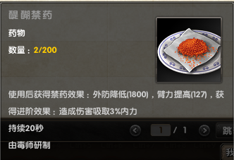 值得一说的是阳魄毒浆。请注意:15秒内,外功防御降低568。