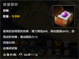 毒药的冷却时间是1分钟,持续时间全部为20秒。也就是每隔40秒可以吃同一种毒药。