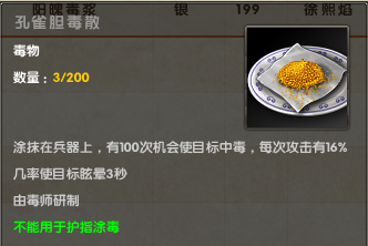 孔雀胆毒散,天梯战场必备,高富帅必备。
