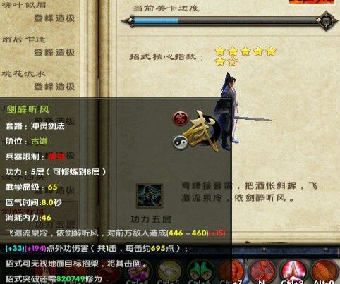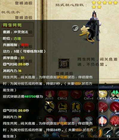 此招核心指数为7星半,冲灵剑法男怒招,带圈圈白霸体范围攻击,击中范围内未格挡或白霸体的敌人,使其封招但能格挡,和浪子回头女一起用能加6成伤害,个人建议学到6层就好了,成长低,从6层到8层只多了每击24点伤害,效果不明显配上丐帮或锦衣卫内功可能好些,段数高,但容易被封招等打断,容易送怒,碰上开太极和寒心只能无语了。招式完成时间3.5秒,配合8层伤害的浪子回头女禁轻功输出还是不错的。